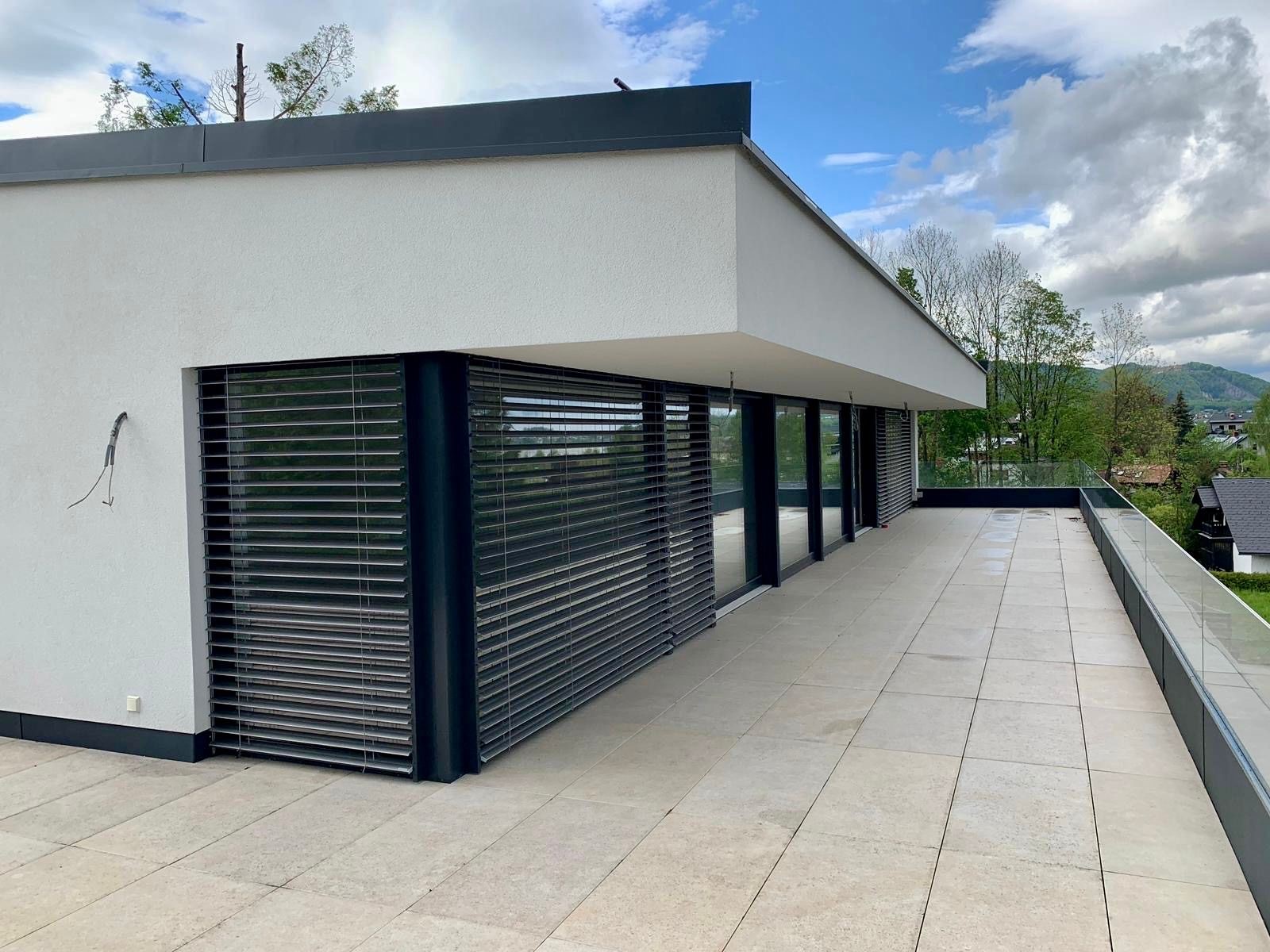 Diese Wohneinheit in einer Wohnanlage mit nur drei Einheiten vermittelt das Gefühl eines Wohnhauses. Das beginnt bei der großen Garage mit Vorplatz, der Zugangsebene im Erschließungsbereich und führt (übrigens mit Lift) in den großzügigen Wohnbereich mit über 200 m² Wohnfläche und einer sensationellen Terrassenlandschaft. Im Mezzanin wartet auf der Westseite noch eine kleine Gartenfläche von etwas mehr als 32 m². Die Wohnung ist hochwertig und sehr geschmackvoll eingerichtet und wird inklusive Möblierung zum Verkauf angeboten.